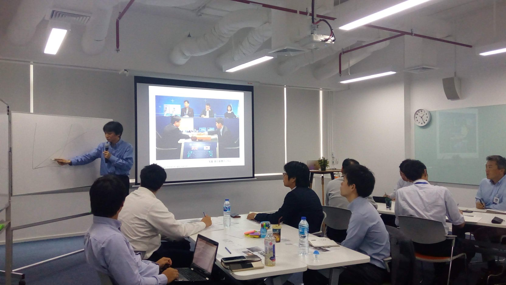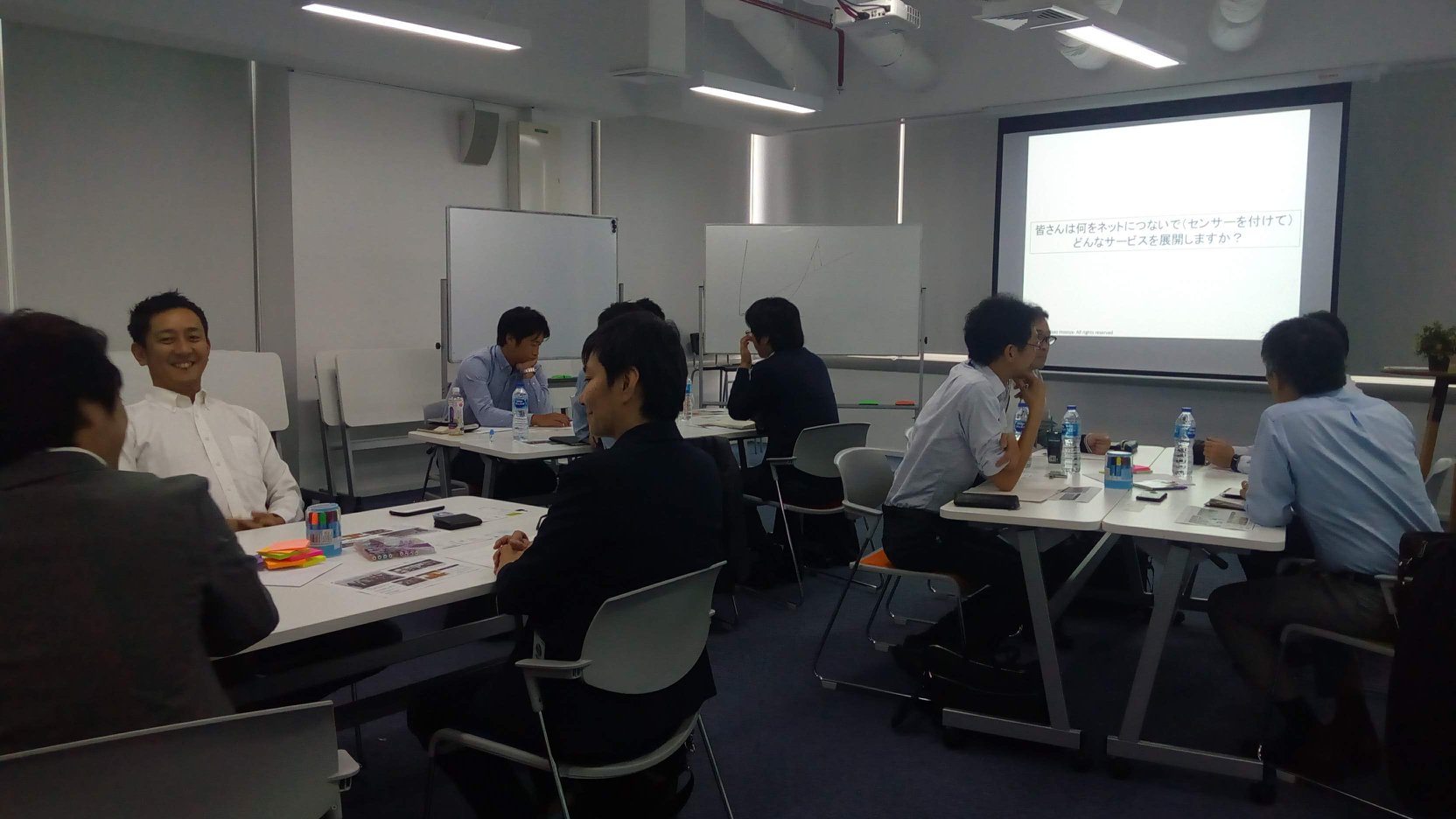 Participants first learned how the recent IT evolution, such as Iot and drone, is effecting business, and how they can acquire innovative thinking. After that, participants enjoyed practicing innovative thinking skill. Mr. Hosoya provided many interesting group discussion topics, such as “What kind of business will you develop by connecting a sensor to something?” and “10 years from now, what will disappear?”