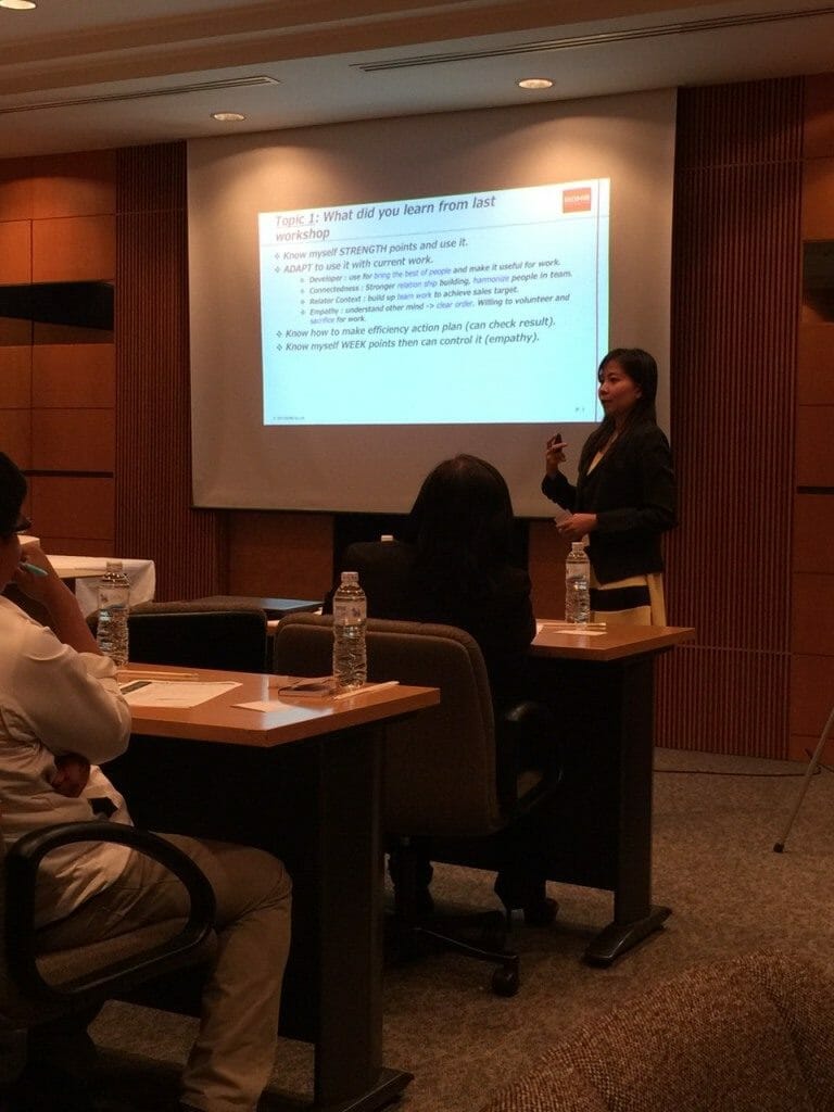 Asian Identity Co., Ltd. has productively direct the workshop with the professional programs and attitude by focusing on each staff individually. On first workshop day staffs get to know how to proper deal with emotional and logical communication in different scenarios. Moreover, they get to discover their own core strengths which could be use to adapt with daily tasks, team communication, management skills and take it into practice. On second day, participants were asked to present the outcome of how they apply knowledge from previous session to develop their subordinates. Adding with ice breaking activity to work on attitude adjustment.