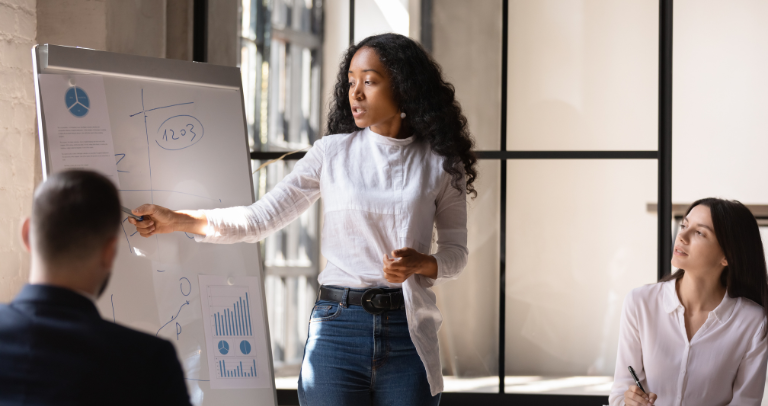 เช่น “พรีเซนเทชั่นวันนี้ที่มีกราฟประกอบด้วยช่วยให้ลูกค้าเข้าใจข้อมูลง่ายขึ้นเยอะเลย รอบหน้าลองทำสีแท่งกราฟที่เราอยากเน้นย้ำให้เด่นกว่าอันอื่นหรือใส่กรอบให้มันดูดีไหม น่าจะช่วยดึงสายตาให้ผู้ฟังรู้ว่าจุดไหนที่เขาควรโฟกัส หรือจุดไหนที่เรากำลังพูดถึงอยู่”