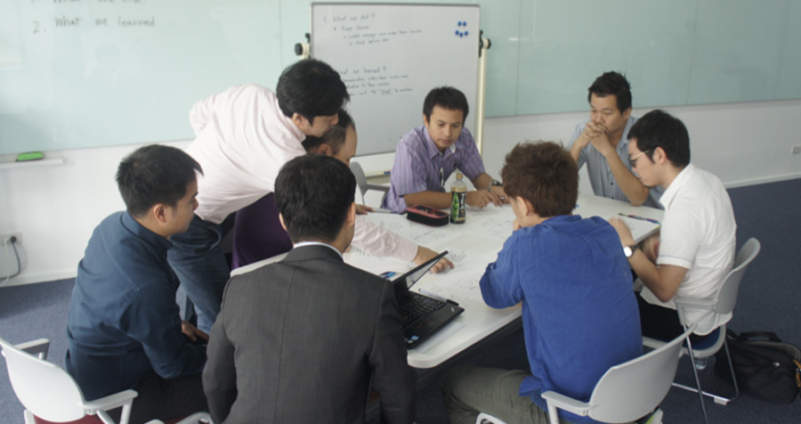弊社では日本人・タイ人のコラボ レーションを促進するサービスを 行っています。ファシリテーター の導きの元にお互いの考えをオー プンに伝えあい、双方の立ってい る文化的背景や前提が異なること を確認します。深い相互理解を通 じて信頼関係を構築し、職場でど のようなアクションをしていくか を議論します。