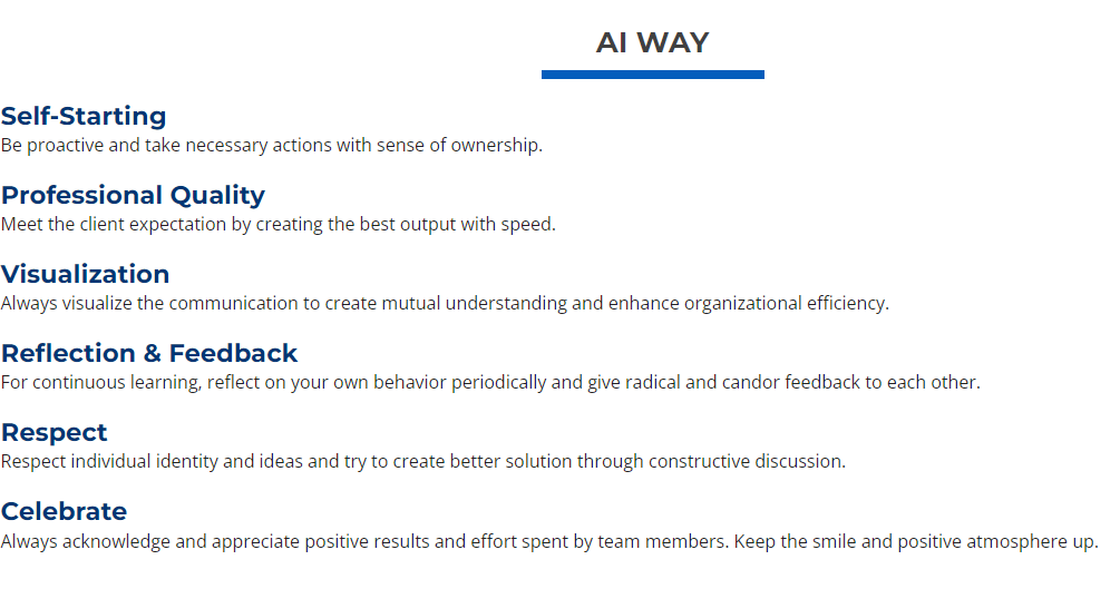 アジアン・アイデンティティの「AI WAY」にある、「Professional Quality」、「スピード感ある最高のアウトプットでお客様の期待に応える」という概念を、コンサルタントとして、ファシリテーターとして、特に大切にしています。