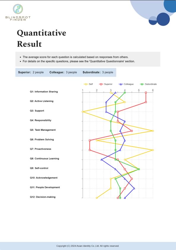 Blindspot Finder(ブラインドスポット・ファインダー)は、自分では気づきにくい盲点(ブラインドスポット)を明らかにするための360度フィードバックツールです。