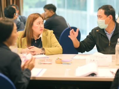 参加者が自ら手を動かし、頭を使って学ぶワークショップ形式で、主体的な学習を促します。