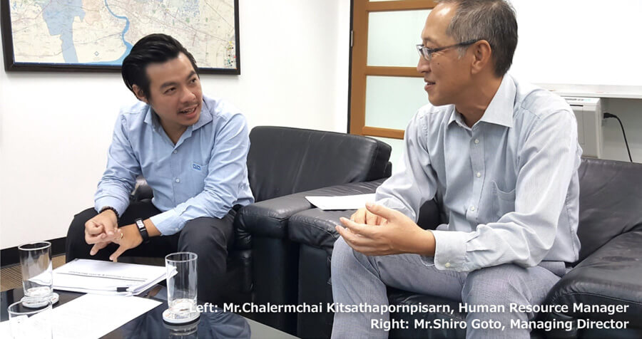 เฉลิมชัย: ตั้งแต่เข้ามาดูแลงานที่ นี่ ผมก็เอาแต่ทุ่มเทด้านการจั ดสรรระบบ HR ต่าง ๆ และด้านการย้ายสํานักงาน จนไม่ได้ใส่ใจด้านการสร้างความ แข็งแกร่งในองค์กร และการพัฒนาบุคลากร ตอนที่คุณโกโตย้ายมา เป็น ช่วงที่ผมคิดว่าเรากําลังจะเริ่มใช้ระบบ HR ต่าง ๆ ผมจําได้ว่าผมคุยกับคุณ โกโตอย่างจริงจังหลาย ๆ เรื่อง เช่น เรื่องการปรับตําแหน่งต่าง ๆ ที่มีมาก เกินไป ระบบการประเมิน และการปรับเลื่อนตําแหน่งที่พนักงานสามารถ เข้าใจและมองเห็นอนาคตในสายอาชีพของตน รวมทั้งการจัดเตรียมระบบ HR ต่าง ๆ ด้วยครับ นอกจากนี้ก็ยังมีเรื่องการกําหนด Competency ที่จะ ใช้ในการจ้างงานตําแหน่งต่าง ๆ การออกแบบคําถามที่สอดคล้องกับ Competency หัวข้อเรื่องการจ้างงานนี้ไม่ได้ปรึกษาคุณโกโตครับ (หัวเราะ) ผมมีสิ่งที่อยากทําหลายอย่างมากครับ จากนี้ก็ตั้งใจว่าจะขอคําปรึกษา จากคุณโกโตไปดําเนินการไปครับ