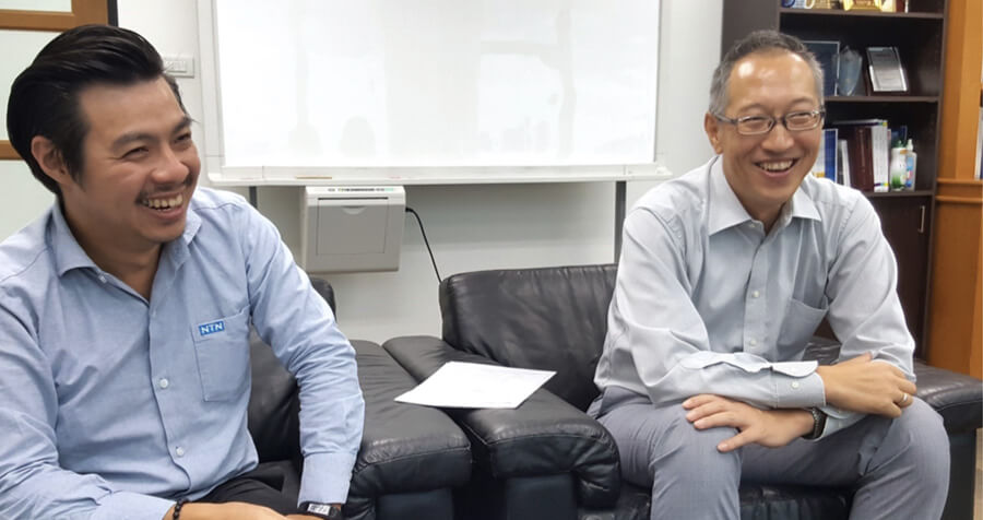 โกโต: ผมเข้าทํางานที่ NTN หลังจากเรียนจบมหาวิทยาลัยในปี 1991 ครับ ผมเป็นคนจังหวัดมิเอะ โรงงานหลักของ NTN ก็ตั้งอยู่ในเมืองคุวานะ จังหวัดมิเอะ เวลาไปเรียนท่ีมหาวิทยาลัย ผมต้องผ่านหน้าโรงงานแห่งน้ี เห็นป้ายบริษัท NTN ตลอด ตัวผมเองก็เรียนเอกด้านวิศวกรรมวัสดุด้วย เลยตัดสินใจเข้าทํางานที่ NTN เพราะต้องการประยุกต์ความรู้ที่มีให้เป็นประโยชน์ ต่อการผลิตแบร่ิงซึ่งเป็นอุปกรณ์ที่ใช้ในอุตสาหกรรมทุกประเภท ตอนนั้นเป็นยุคฟองสบู่ หางานกันง่ายไม่ลําบากเหมือนยุคนี้ ครับ หลังได้รับบรรจุเข้าทํางาน ผมได้เรียนรู้งานด้านการวิจัยและพัฒนาชิ้นส่วนรถยนต์ที่จังหวัดฟุกุโอกะเป็นเวลา 8 ปี จาก นั้นก็ไปประจําที่ดีทรอยต์ ประเทศอเมริกา 4 ปี แล้วก็กลับมาทํางานฝ่ายออกแบบที่ญ่ีปุ่นเป็นเวลา 10 ปี จากนั้น ในปี 2016 ผมก็ย้ายมาทํางานที่ไทยครับ ปัจจุบัน ผมทําหน้าที่ MD บริษัทเทรดดิ้ง เอ็นทีเอ็น องค์กรของเรามีพนักงานท้ังหมด 70 คน ครับ